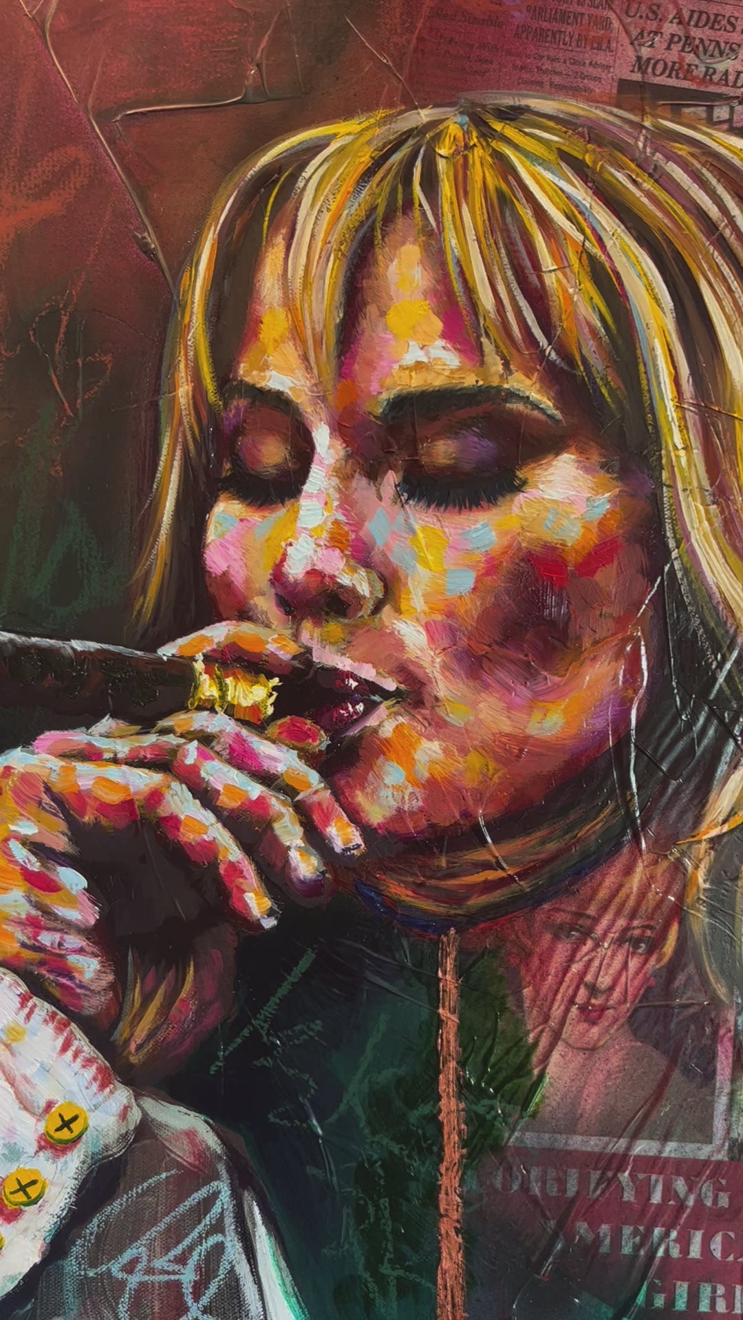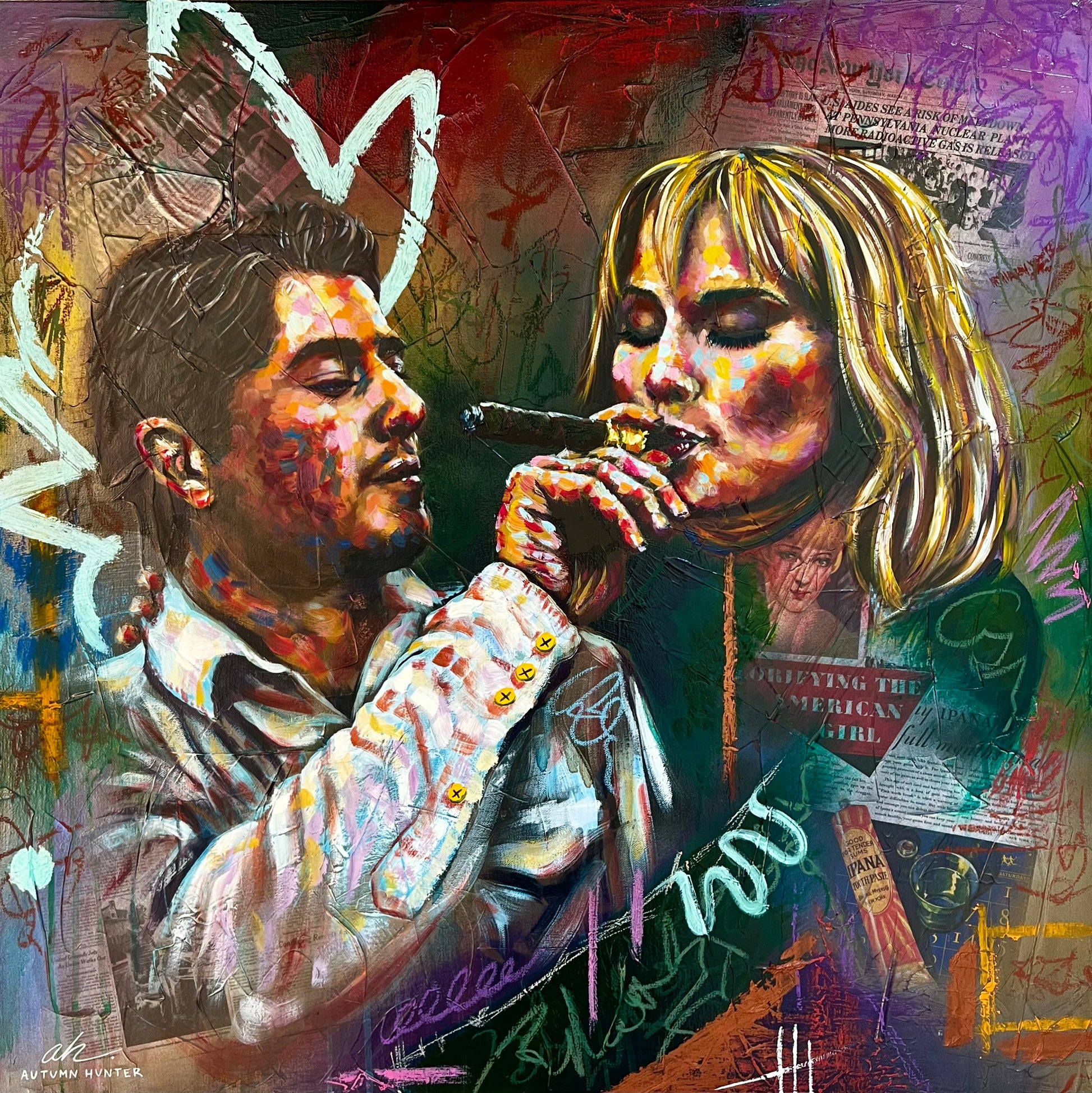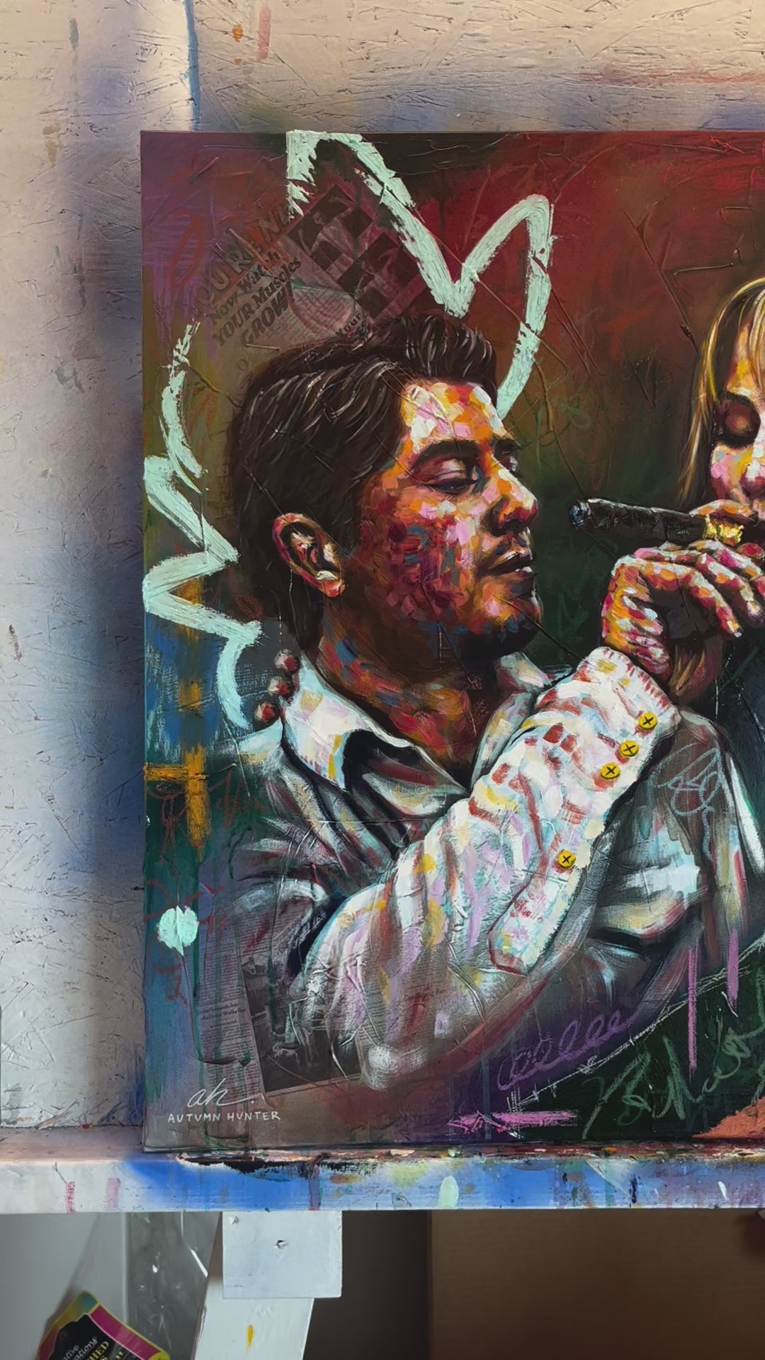 Autumn was INCREDIBLE! Very easy to talk to and extremely passionate! While at the wedding, she watched the ceremony and got her picture right after and started painting! Everyone loved watching her paint, and she painted so fast! I’ve always wanted a live painter at my wedding, but she outdid any expectation I had ever had! My little sister said that she could hear my laugh through the painting ! The colors, the collage, the flowers, and the tiny details were spot on! She captured the essence of us, the wedding, and I will say she was worth all the money and more! If you are thinking about having Autumn as a vender. Just do it. Send it. I am absolutely OBSESSED with it!